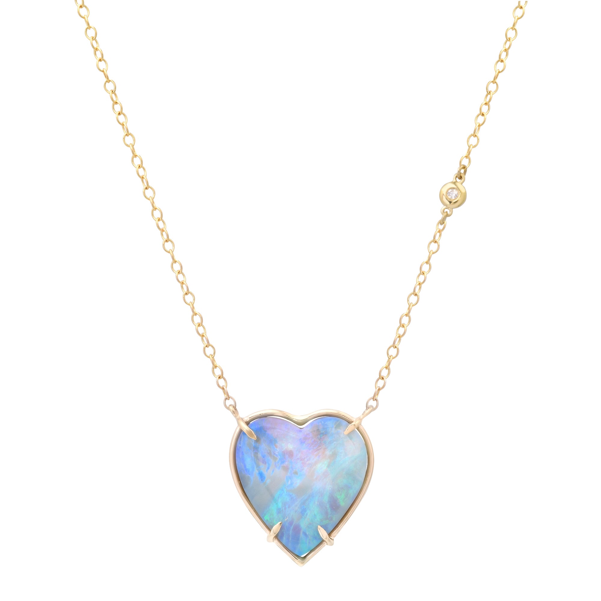 This gorgeous one of a kind solid Australian opal necklace has been placed in our classic wire with a diamond accent along the chain.