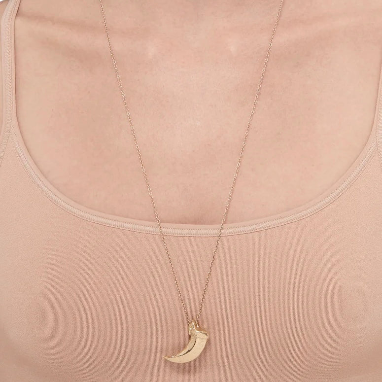 The wolf is loyal, successful and stable. Our classic wolf claw pendant has a gorgeous natural texture and is cast into solid gold.