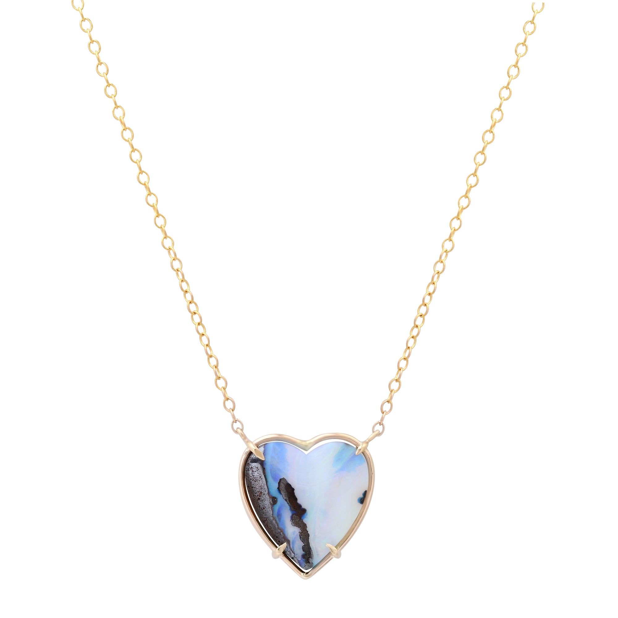This gorgeous one of a kind solid Australian opal necklace has been placed in our classic wire with a diamond accent along the chain.